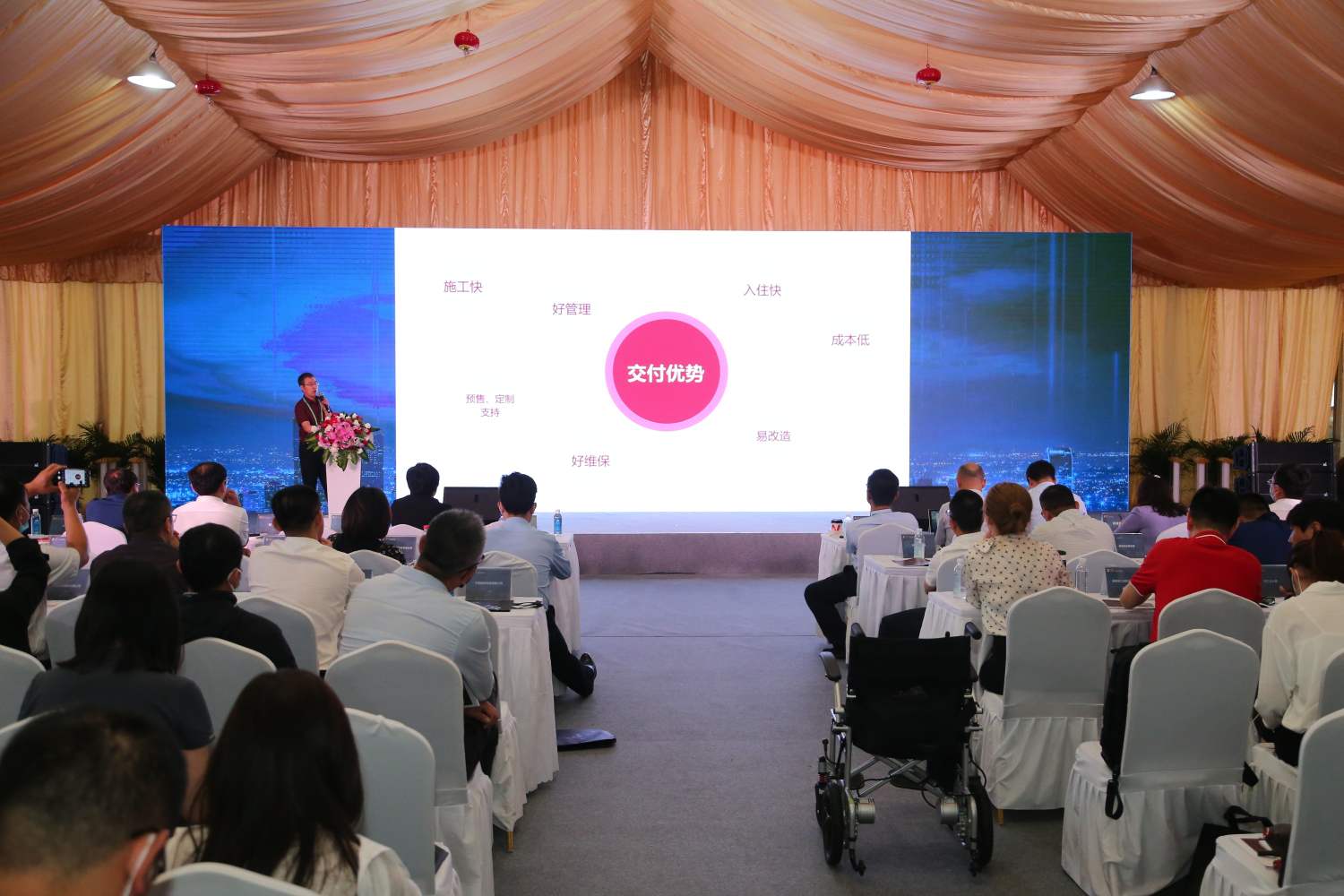 和能人居科技集團居住事業部總經理宋輝先生發表了以“裝配式裝修助力高標準住宅建設”為主題的演講,并向來賓分享了全屋裝配式裝修智能制造體系和全產業鏈布局,以及關于智能智造、技術革新和產業融合心得。